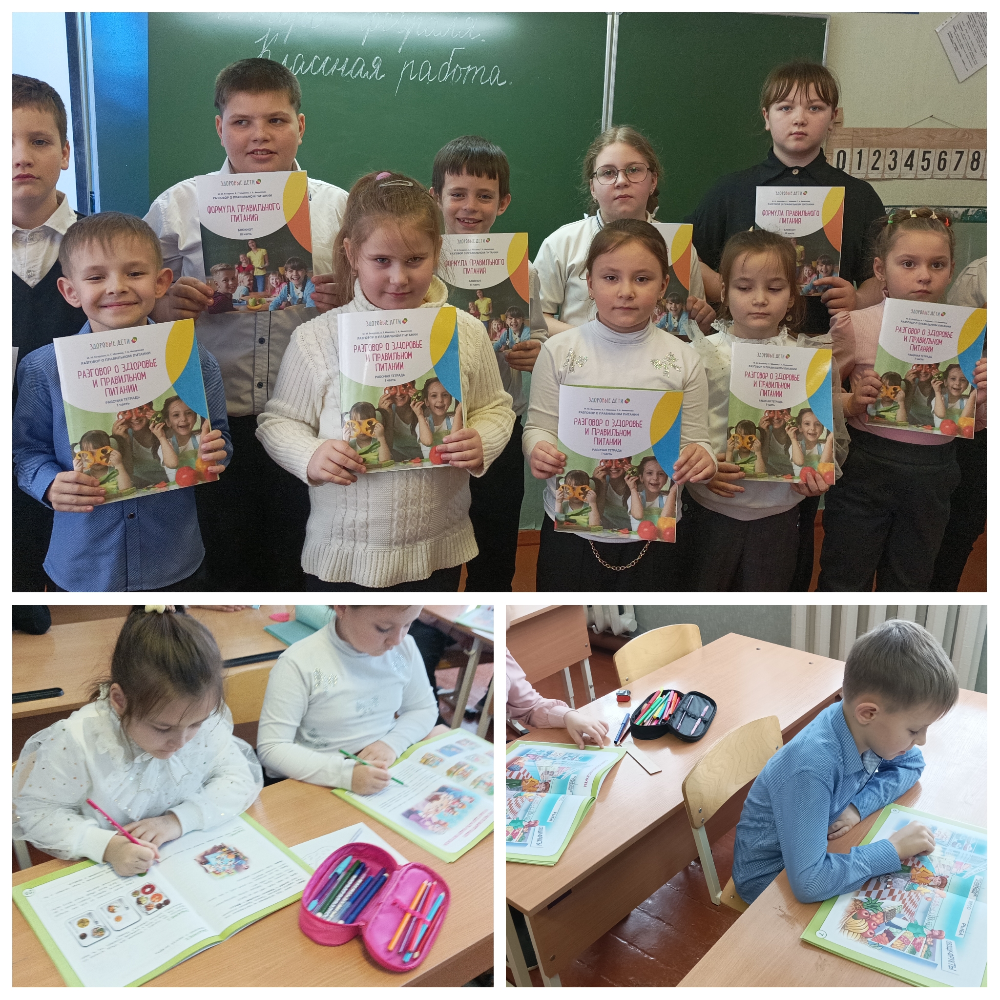 В течение урока обучающиеся поработали в тетрадях по правильному питанию.